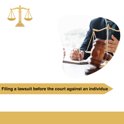 Filing a lawsuit in court against someone
